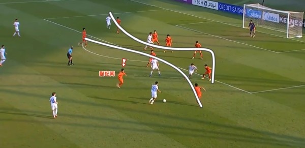 仓促远射,就是直接被封堵。同时在对方发边线球的时候,蒯纪闻作为生力军可以通过跑动来实施压迫,不给对方轻松出球的空间。